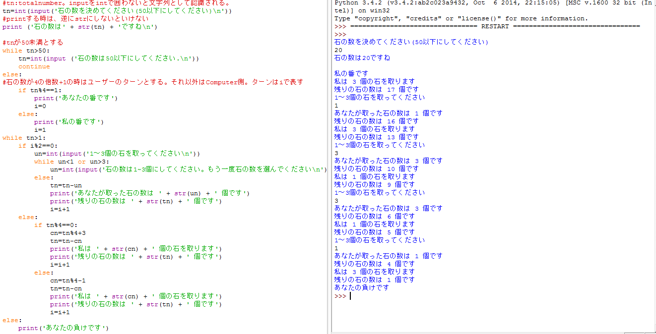 While,If文の用法も確認でき、意外とこうした遊び感覚で作るプログラムの方が勉強になったりします。